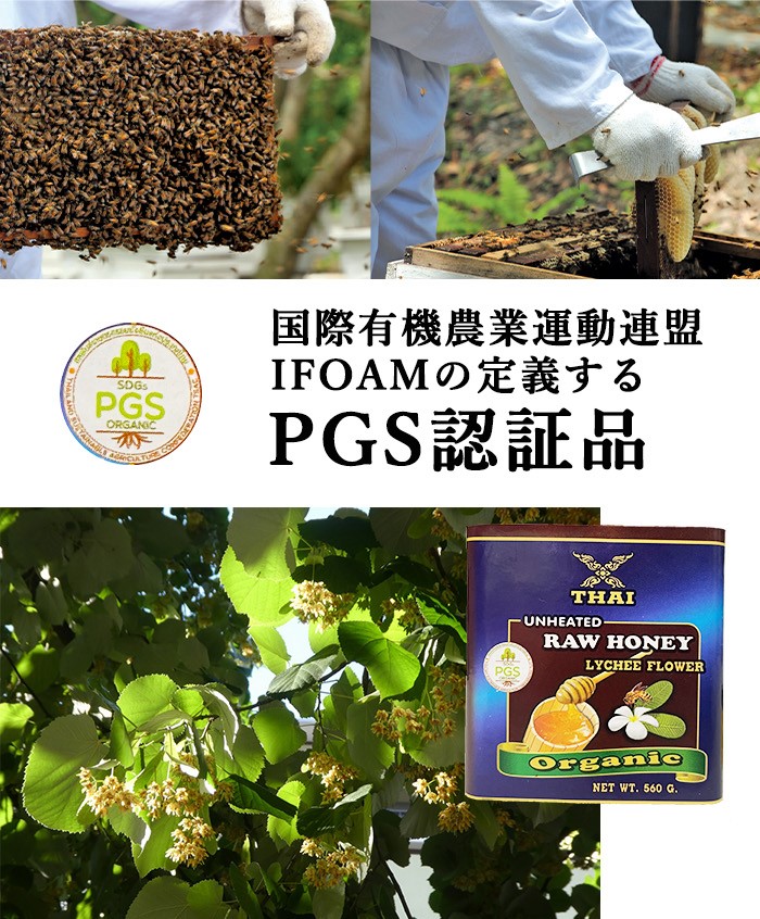 【オーガニック 純粋 生はちみつ ライチフラワー 560g タイ産】有機ハニー RAW HONEY organic PGS(Participatory Guarantee Systems)認証 lychee